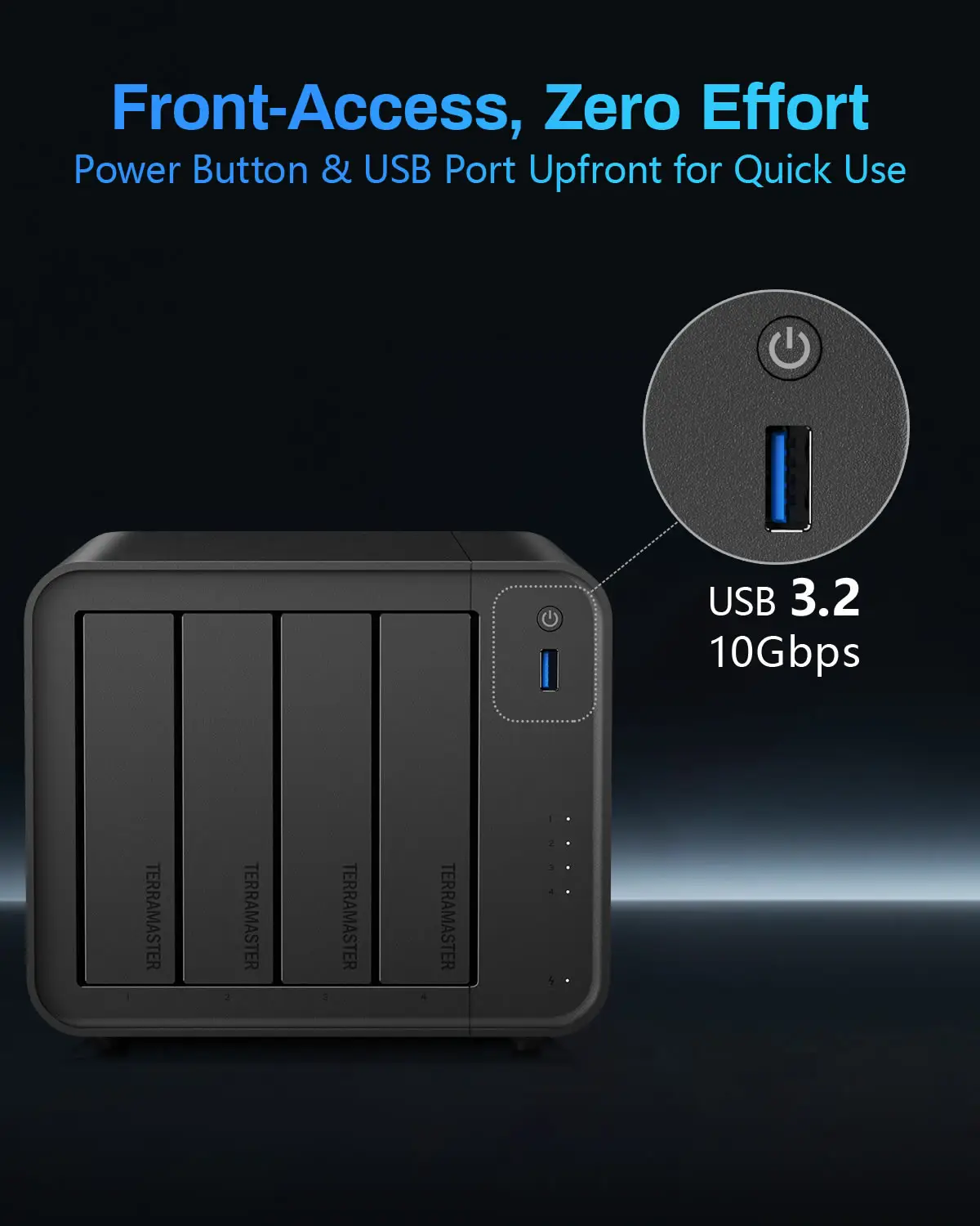 TERRAMASTER F4-425 4-pozíciové NAS úložisko – Intel x86 štvorjadrový procesor, 4 GB RAM, 2.5GbE LAN, sieťové úložisko a multimediálny server pre domácich používateľov