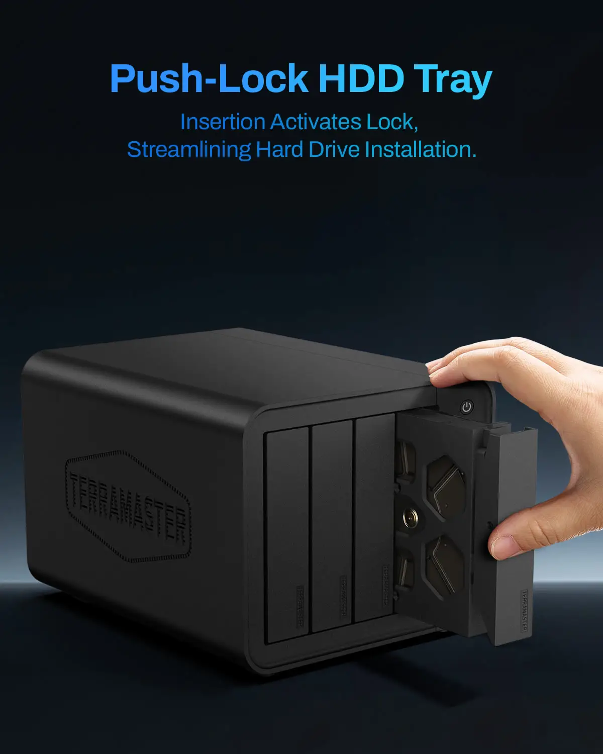 Obrovská kapacita a bezpečnosť: F4-425 4-pozíciové NAS podporuje až 120 TB úložiska (4 × 30 TB), viac než 50 nezávislých používateľských účtov a flexibilné TRAID polia, ktoré šetria až 30 % úložného miesta oproti tradičnému RAID, pritom zachovávajú redundanciu dát. Bezpečnostný modul SPC a CloudSync (Google Drive, OneDrive, Dropbox) zaručujú spoľahlivú ochranu dát. TerraSync navyše umožňuje obojsmernú synchronizáciu medzi F4-425 a PC/Mac.